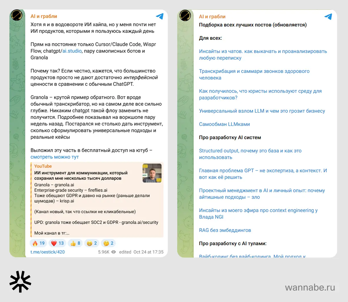 - «Где найти действительно интересные кейсы?» Поиск практических примеров редко приводит к открытиям. Большинство материалов — это вариации того, что мы уже делаем. Даже для личных задач сложно найти что-то принципиально новое.