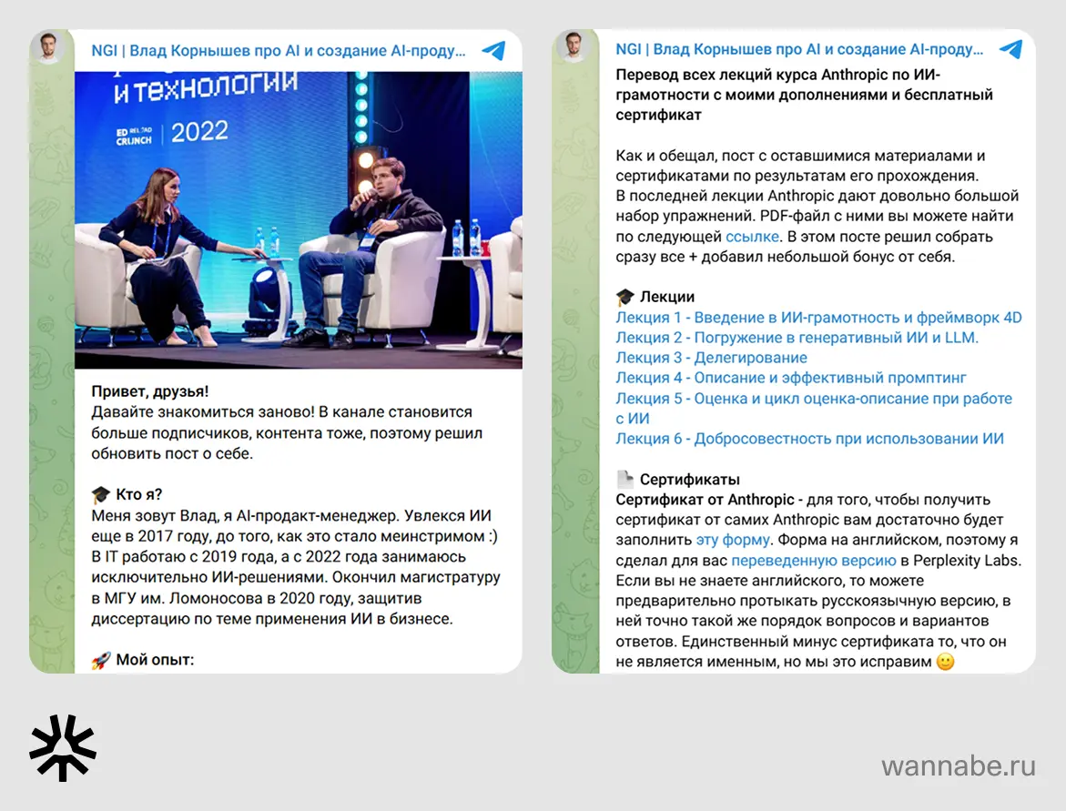 При этом мы не хотели делать большой акцент на поиск широко известных спикеров — многие ребята, которые делятся трендами в ИИ начали получать известность совсем недавно, и мы не хотели делать из этого барьер входа.