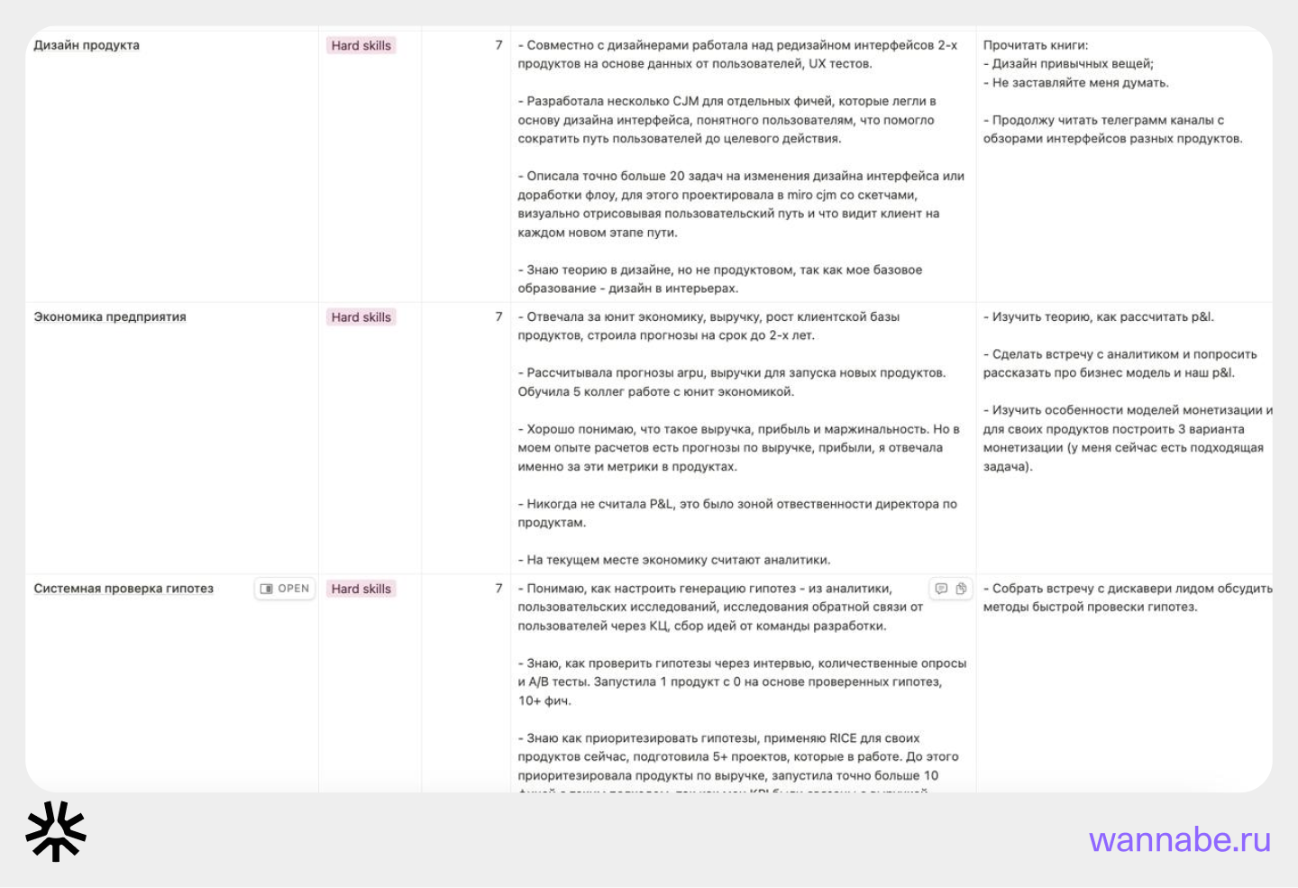 Моя зона ответственности как классического продакт-менеджера — всё, что связано с продуктом. В моей работе есть всё, что мы изучали на курсе Wannabe, и я могла применить на практике все знания.