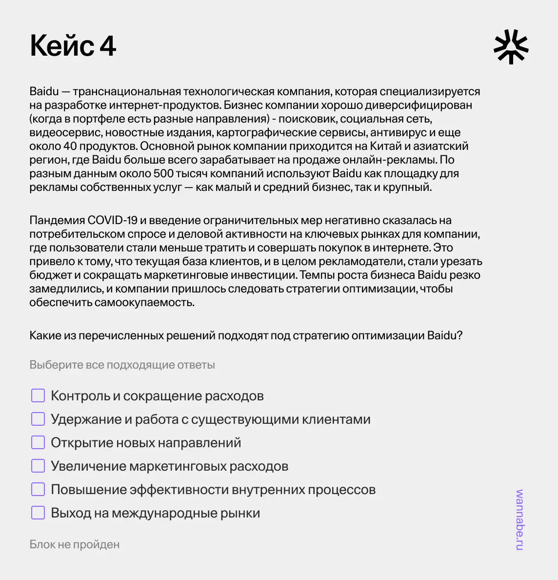 Но это ещё не всё — к каждому блоку в курсе было два типа задач: выполнить задание на абстрактном примере, например исследовать конкурентов какой-то компании, и на своём продукте. В первую очередь я выполняла задачи для своего продукта, а абстрактные кейсы решала по остаточному принципу.