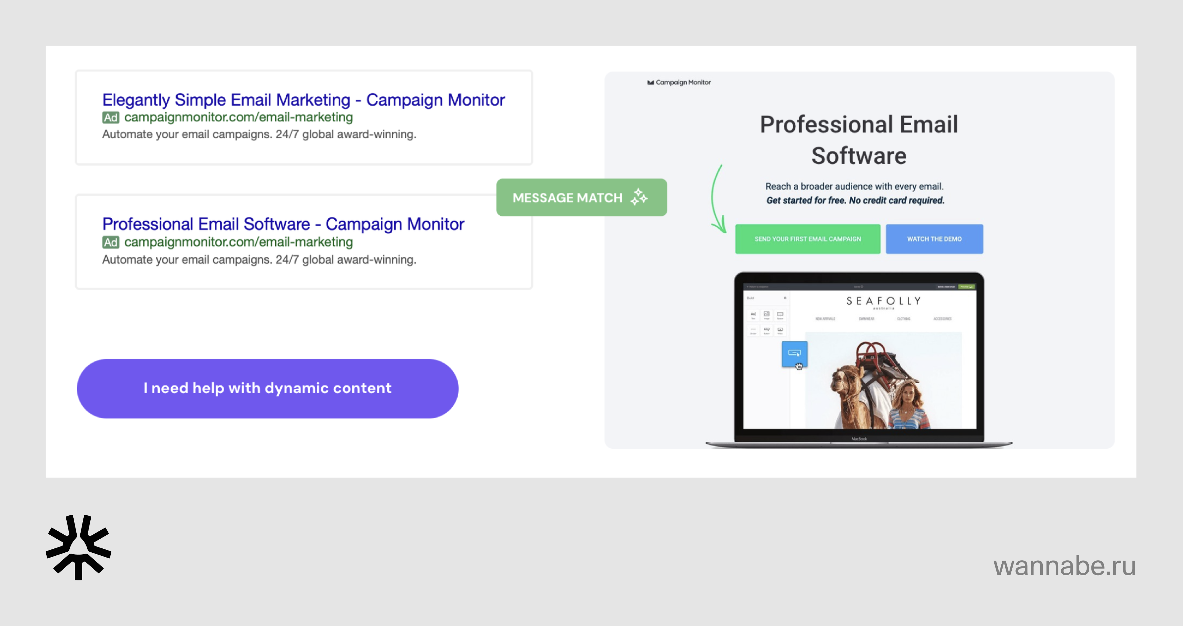 — использовали динамическую замену текста для адаптации контента под каждое рекламное объявление.