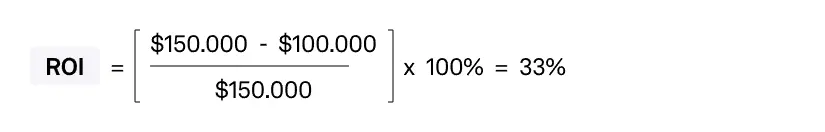 Предположим, компания инвестировала $100 000 в рекламную кампанию и в результате получила дополнительную прибыль $150 000. ROI этой кампании можно рассчитать следующим образом: