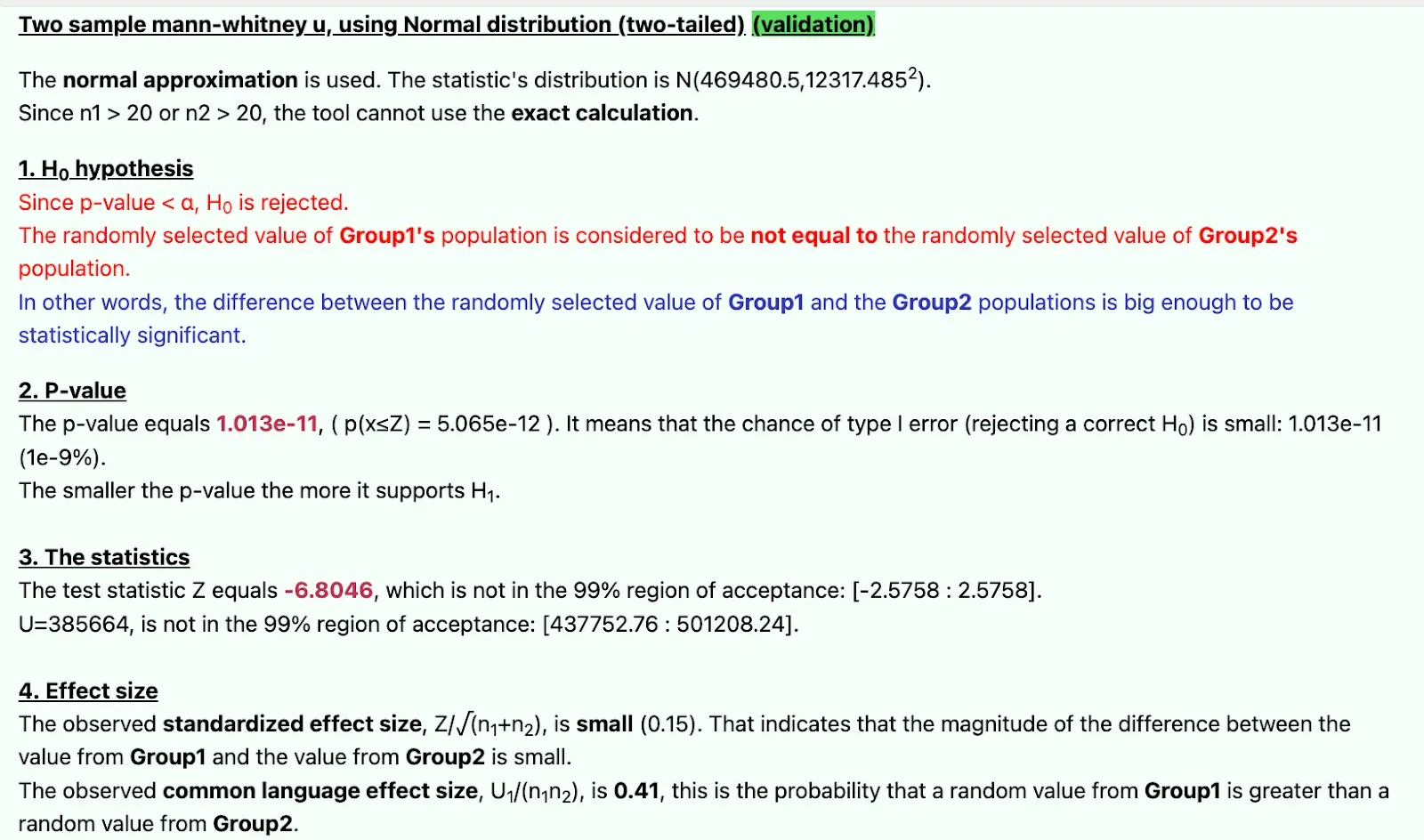 - Мощность теста — вероятность, что тест покажет различия между результатами в том случае, если они действительно есть. То есть чем мощнее тест, тем результаты меньшего масштаба мы способны обнаружить. Важно помнить, что чем больше наблюдений в выборке, тем выше мощность теста. Она определяется как 1 — β = 0.8.