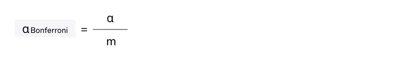 В формуле α — заданный уровень статистической значимости, m — количество гипотез.