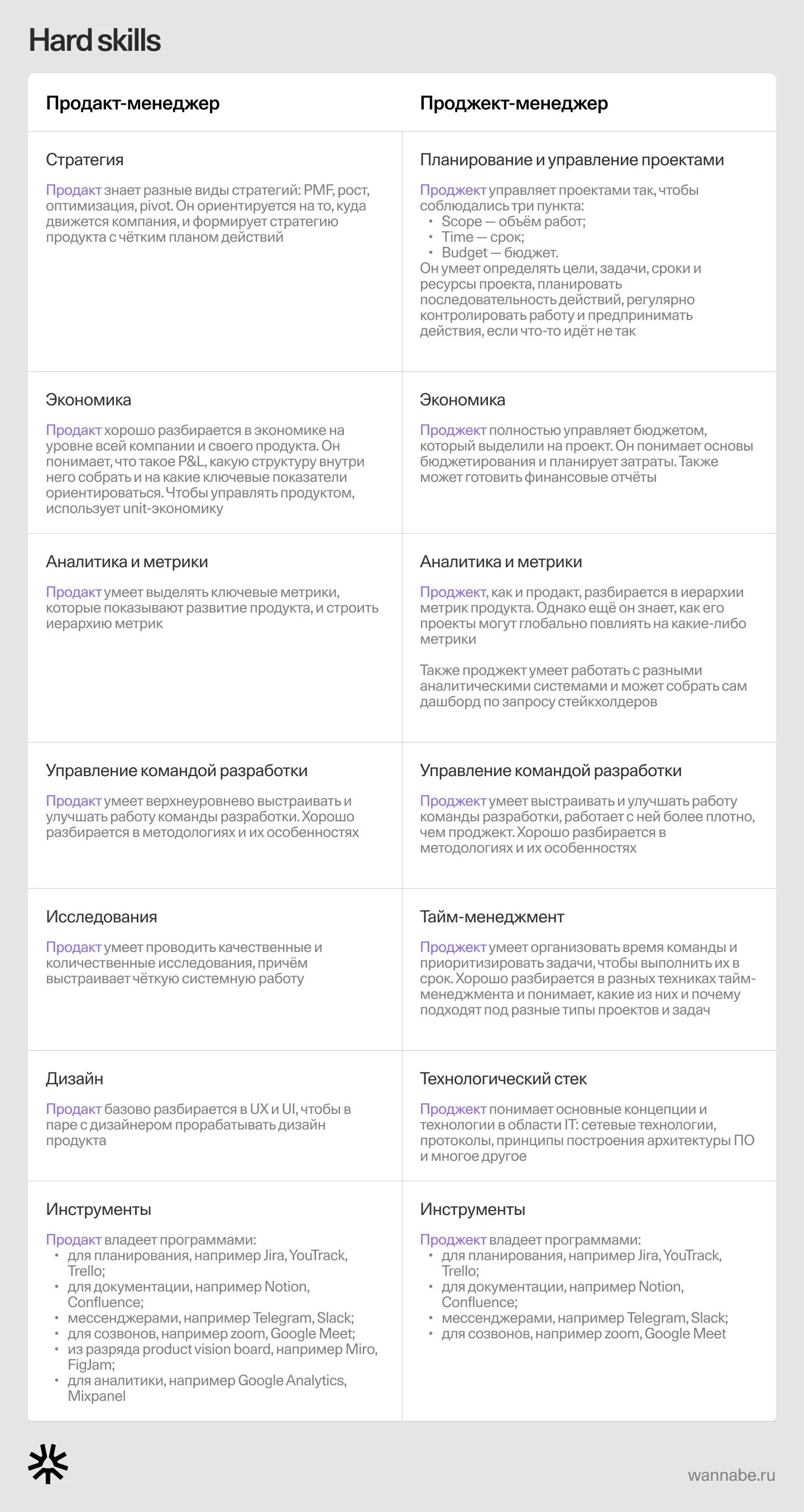 В нашей библиотеке WANNABE мы подробно разбирали, какими навыками должен обладать продакт-менеджер и как системно выстраивать свою работу.