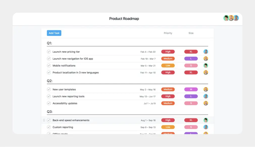 Важно, чтобы работа для разработчиков не была хаотичным перечислением процессов и задач, которые нужно сделать. Для этого продакт составляет роадмэп — логичный алгоритм со списком задач, конкретными сроками и приоритетами. Роадмэп основан на стратегии продукта и ресурсах команды. То есть, например, нельзя спланировать выполнить глобальную задачу за неделю, если в команде всего два разработчика, которые очевидно не успеют.