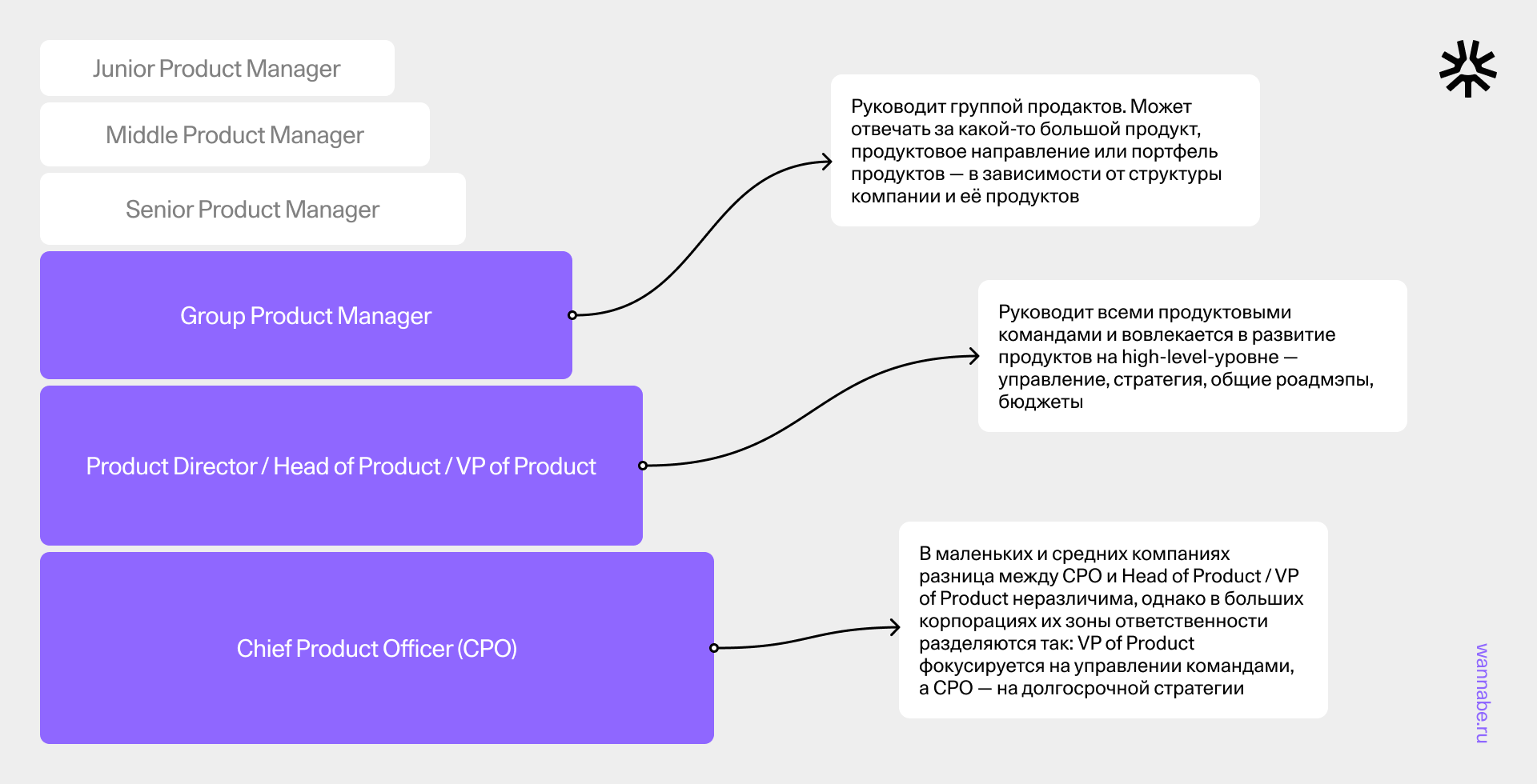 Позиции могут называться по-разному, это зависит от структуры продуктовых команд и корпоративной иерархии компании. Смотрите прежде всего на обязанности и зоны ответственности продакт-менеджера — именно этим определяется профессиональный уровень и зарплата.